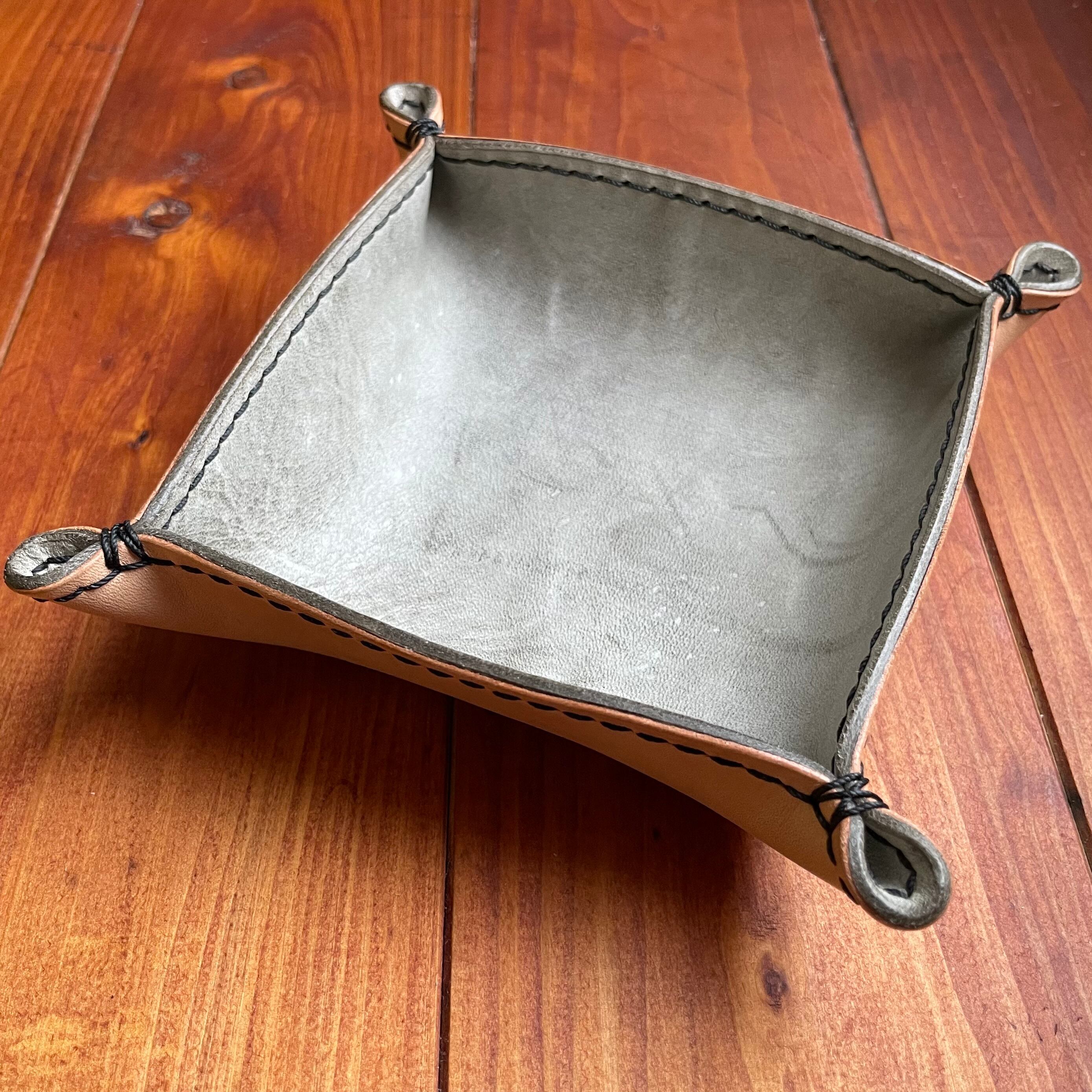 内側2mm厚、外側1mmを張り合わせて四隅を縛り、トレイにしました。